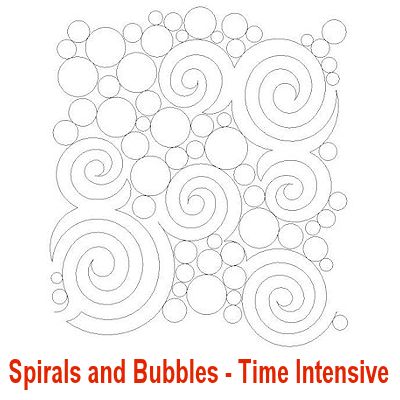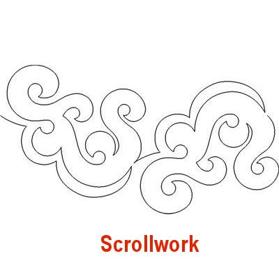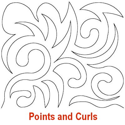 Here is a selection of my long arm, edge-to-edge designs that are curvy and/or round. Please use the complete pattern name in red (below each design pic) when requesting a long arm design. Note, some names are followed by the words “Time Intensive”, those cost a little more than the standard edge-to-edge designs.