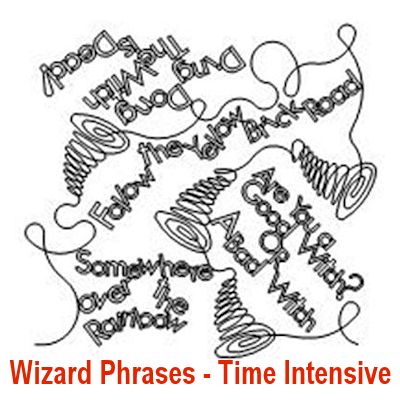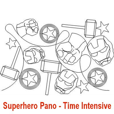 Here is a selection of my long arm, edge-to-edge designs related to a variety of famous characters. Please use the complete pattern name in red (below each design pic) when requesting a long arm design. Note, some names are followed by the words “Time Intensive”, those cost a little more than the standard edge-to-edge designs.