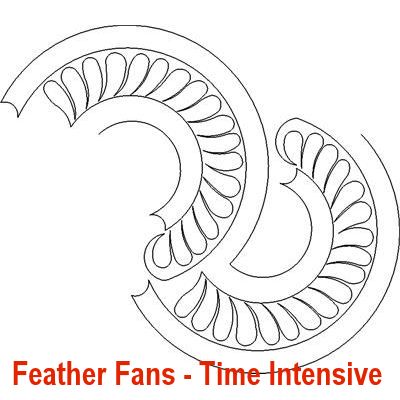 Here is a selection of my long arm, edge-to-edge designs that feature feathers or are fancy (and don’t necessarily fit into another category). Please use the complete pattern name in red (below each design pic) when requesting a long arm design. Note, some names are followed by the words “Time Intensive”, those cost a little more than the standard edge-to-edge designs.